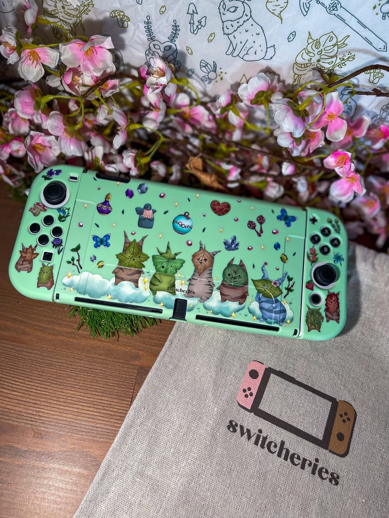I’ve always been a Zelda fan, but Zelda fever hit me hard when Tears of the Kingdom released, so I needed to get my Nintendo Switch some cute Zelda themed accessories. I couldn’t resist getting this adorable design with these super cute chibi style Link and Zelda and the little koroks. It is just so cute! I also love that it is transparent so I can still enjoy the sleek design of my Nintendo Switch OLED underneath.